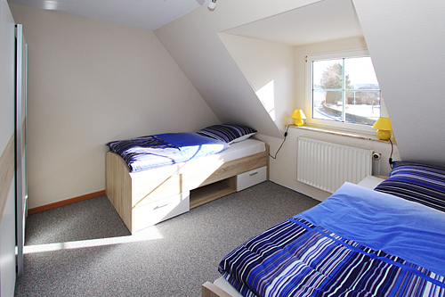 - Schlafzimmer 3: Zwei Einzelbetten (90×200 cm), Kleiderschrank